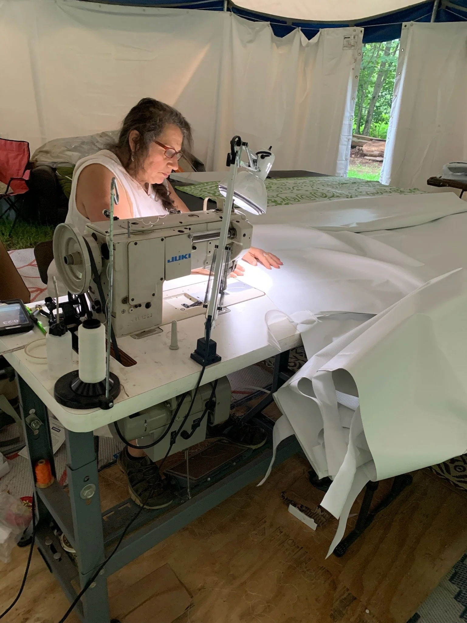 Birdie is our crew mom and also does all the sewing required in the yurt building process. She has become a master seamstress in her 20+ year career and brings a great deal of skill and experience to the team. There’s no challenge she can’t tackle. She’s doing so much to improve our sewing offerings and provide the highest level liners that money can buy.